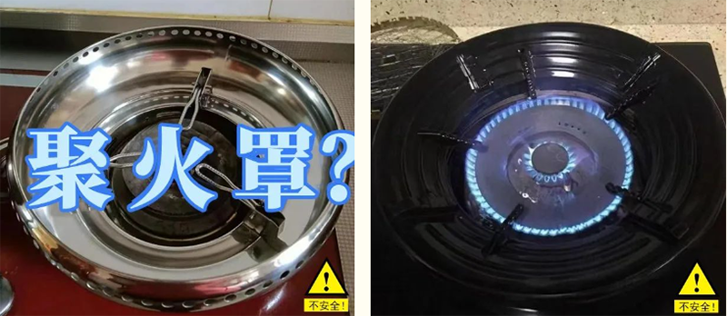 “防風(fēng)罩”又稱“聚火罩”“聚能盤”“節(jié)能環(huán)”,宣稱具有防風(fēng)、節(jié)能、減少熱損失、提高熱效率的功能。但是一旦使用了這種“防風(fēng)罩“,看似把火焰圍起來,讓燃?xì)饧袦p少浪費(fèi)。實(shí)際上是減少了進(jìn)氣空間,阻礙了空氣流通,讓燃燒需要的氧氣供給不足,導(dǎo)致不完全燃燒,不僅降低了熱效率,還產(chǎn)生一氧化碳等有害氣體,形成安全隱患。