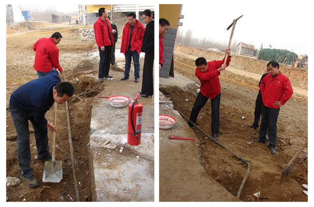 搶修隊員現場清理作業(yè)帶與公司領導親自上陣開挖工作坑
